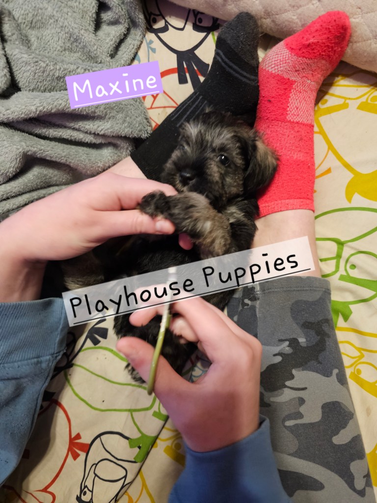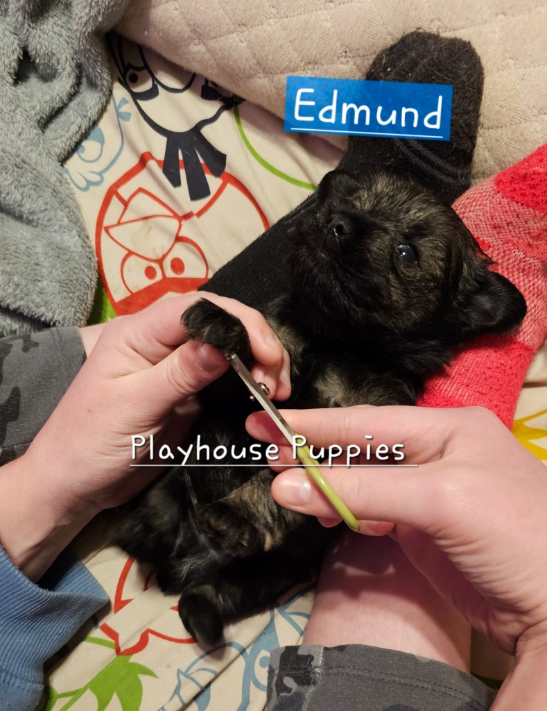 For today, enjoy some pictures of Nova’s Mountain Litter and Aurora’s Narnia Litter getting their nails trimmed!