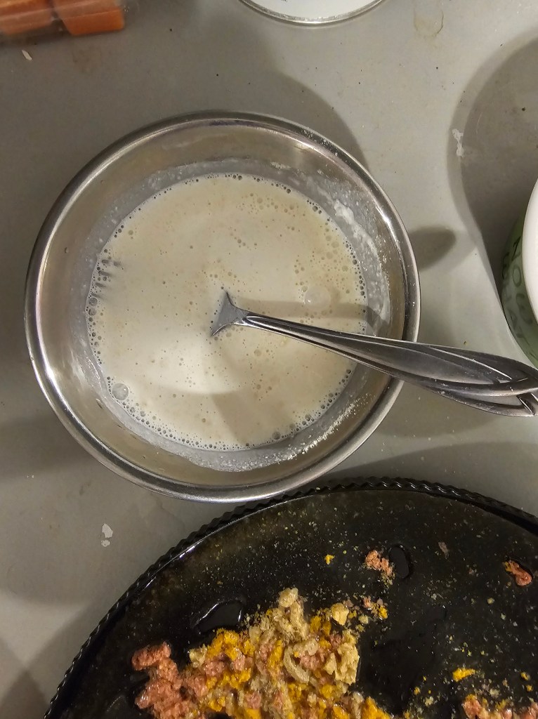 Then everything is mixed together. This is mostly liquid at this point. Puppies at this age are just learning how to lick and don’t eat very much. We start thickening the puppy mush around 5 weeks and gradually make it thicker and less soft. Puppies are usually eating solid hard food around 7 weeks of age.